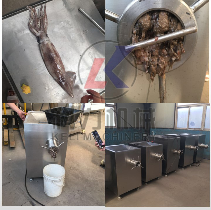 科力牌凍肉絞肉機是肉制品生產行業中通用性高、使用范圍廣的一種肉食加工設備。它是依靠螺桿將料斗箱中的原料肉推到預切板處,通過螺桿的旋轉擠壓使孔板與絞刀產生相對質運轉,從而將原料肉切成顆粒形狀,確保了肉餡的均勻性。通過孔板的不同組合可達到理想的要求的不同肉餡
