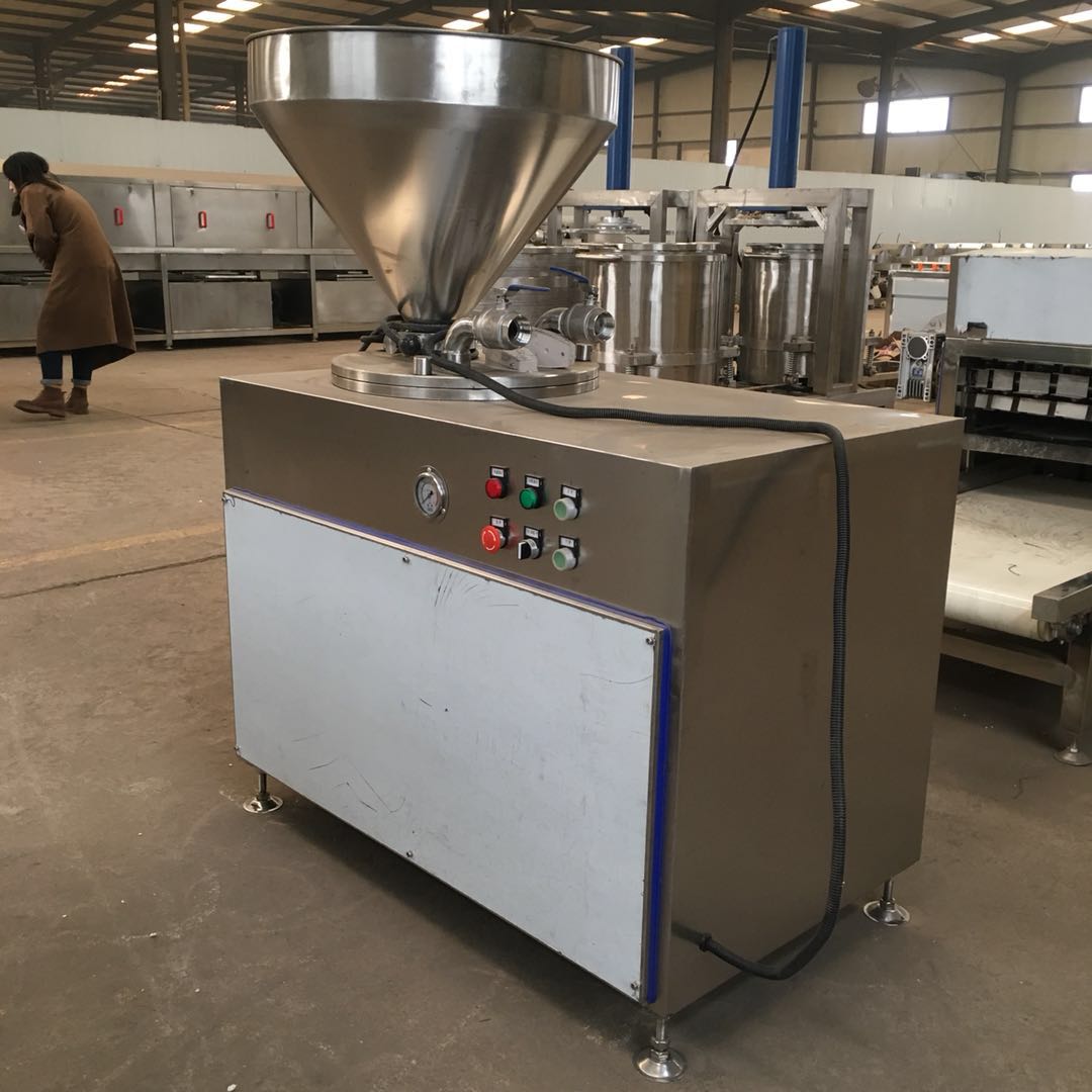 科力液壓灌腸機(jī)可以用于各種餡料灌制腸類,可加工雞肉腸,紅腸,臘腸,香腸,蔬菜腸,粉腸,大眾腸,烤腸,血腸,糯米腸等各種腸類。灌制速度快,效果好。該機(jī)上部設(shè)有貯料斗、碟形閥,可實現(xiàn)不掀蓋連續(xù)灌制,提高了工作效率。自動化程度高,該設(shè)備采用不銹鋼材質(zhì),堅固耐用易清洗。操作簡單方便,出料速度快,科力液壓灌腸機(jī)灌制的香腸腸體均勻,即可灌肉塊狀的腸,也可灌糜狀的腸,靈活方便,加料自如,效率高,并有很好的連續(xù)生產(chǎn)能力,清洗方便,適合各種類型的生產(chǎn)企業(yè)。