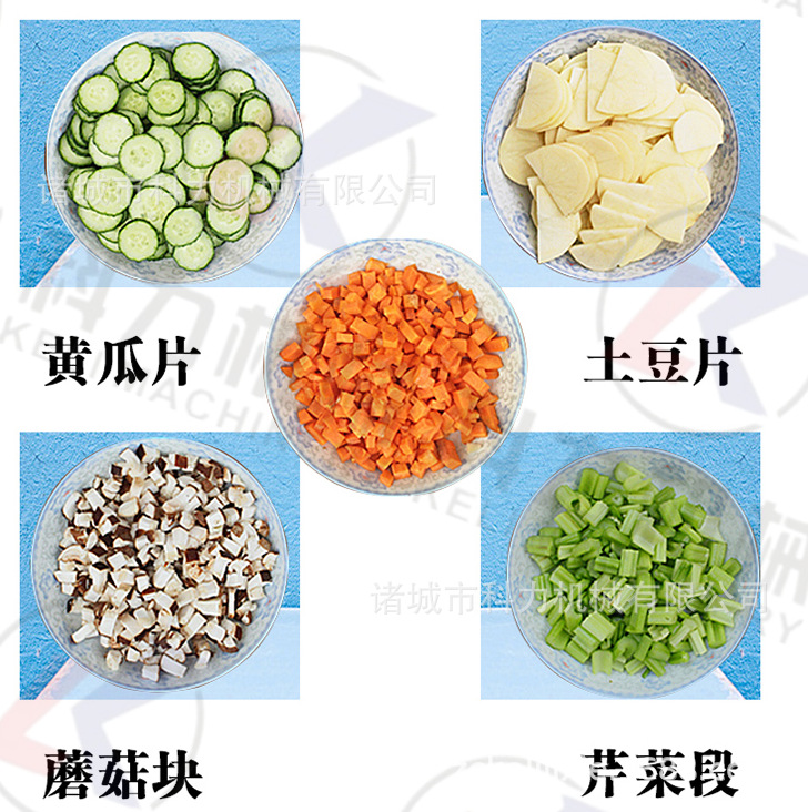 球根莖類切菜機(jī)可切蘿卜,土豆,紅薯,芋頭,筍,洋蔥,茄子,蘋果,生姜等等眾多的瓜類果類切片,切絲,切丁,如薯片、薯?xiàng)l、蘿卜絲等等,厚薄大小規(guī)格可訂做。